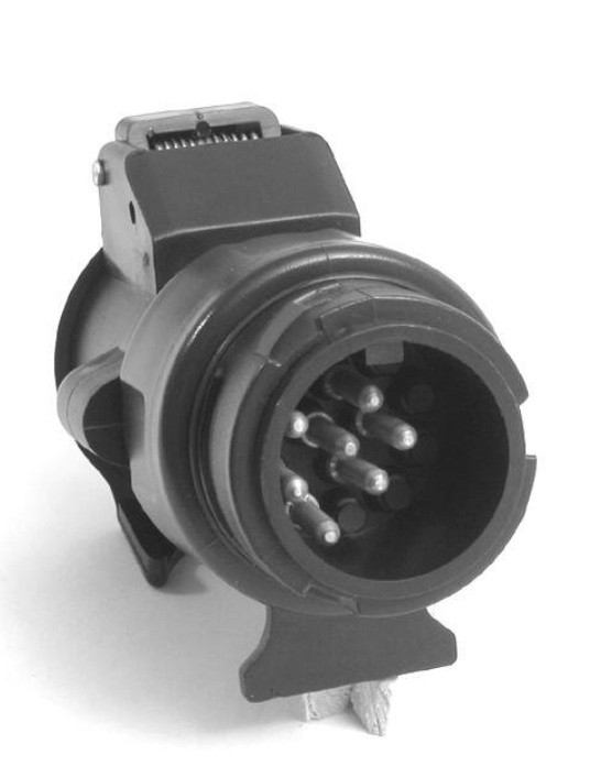 Egyszerű és megbízható elektromos csatlakozó adapter utánfutókhoz, kerékpárszállítókhoz vagy más 7-pólusú vontatmányokhoz. Kedvező árú, mégis strapabíró, időjárásálló kialakítású.