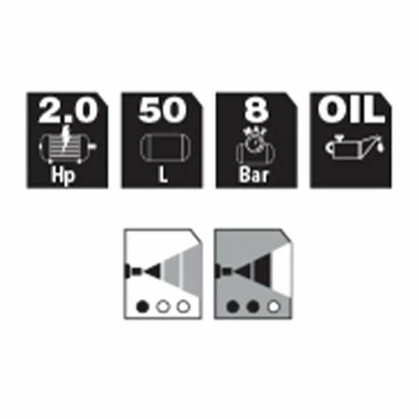 Biztonsági szeleppel és légszűrő, melyek meghosszabbítja az élettartamot. Professzionális, modernizált kondenzvíz-leeresztő csap gömbcsap formájában, amely garantálja a könnyű használatot. STANLEY olajkompresszor közvetlen meghajtással, sokoldalú a 2 LE-s szivattyúnak köszönhetően.